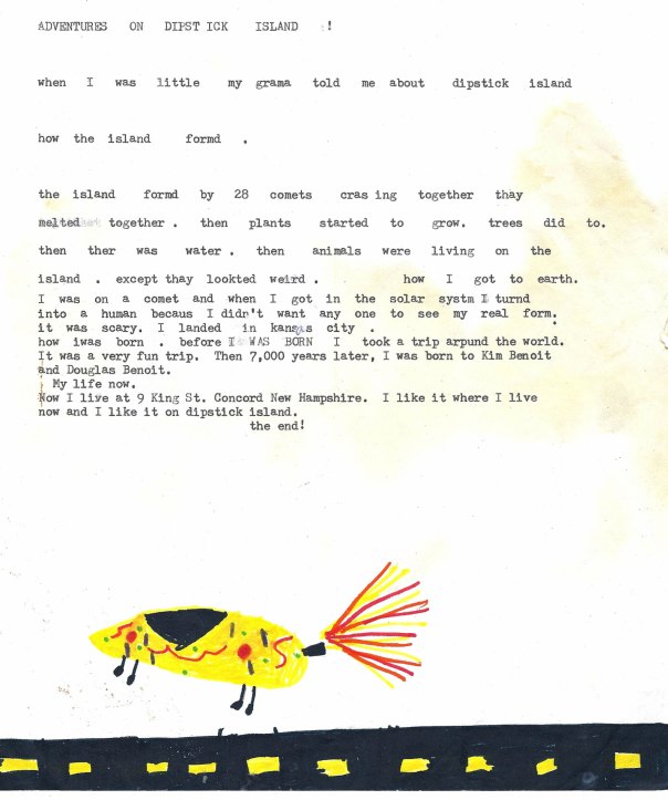 Now I live at 9 King St. Concord New Hampshire**. I like it where I live now and I like it on dipstick island.